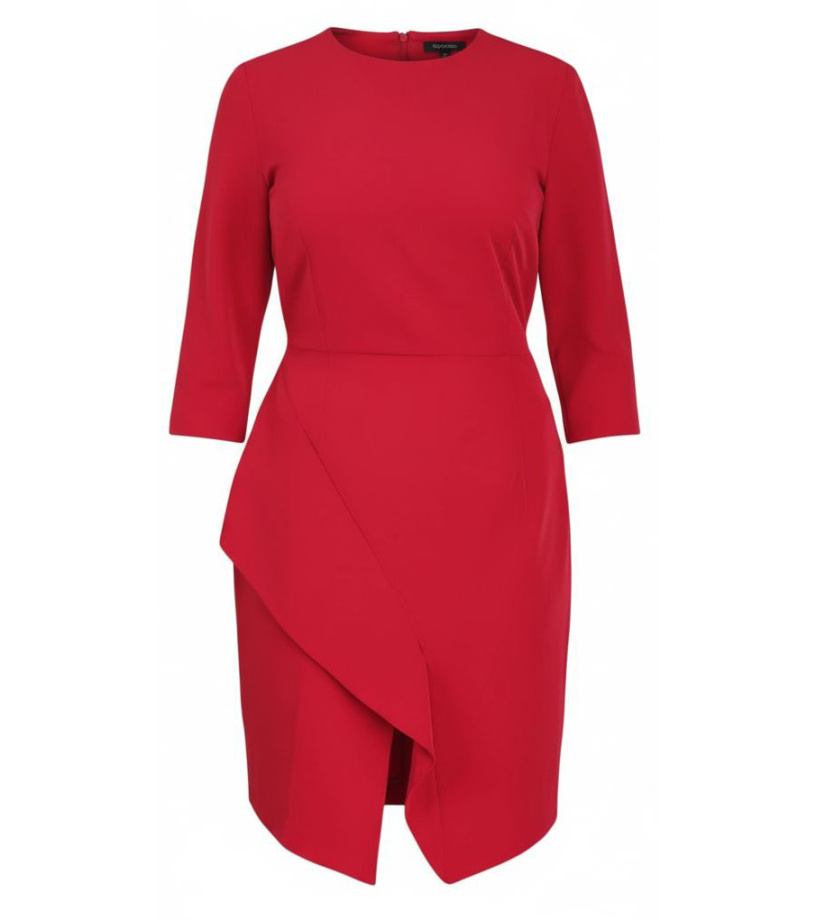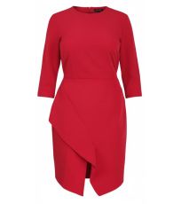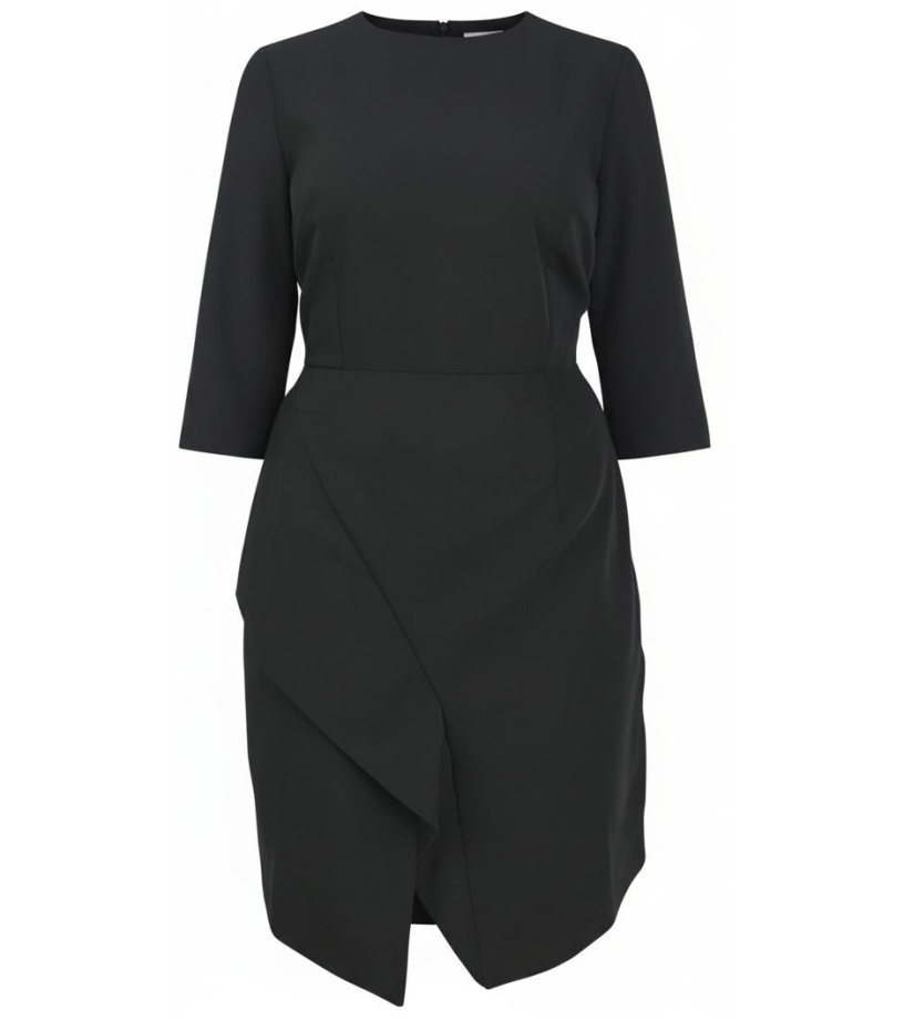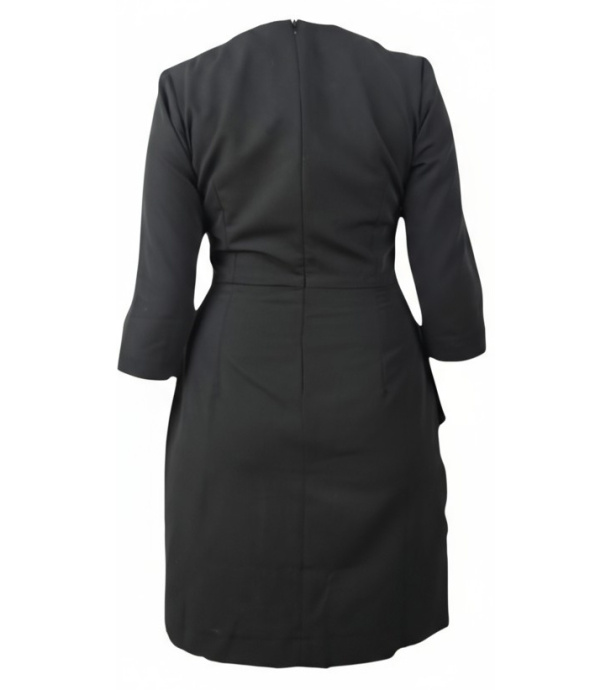 Dámske plášťové šaty s 3/4 rukávmi. vypasovaný strih. Rozparok na prednej strane, zapínanie na zips na zadnej strane. Okrúhly výstrih. Materiál: 63 % bavlna, 33 % polyester, 4 % elastan