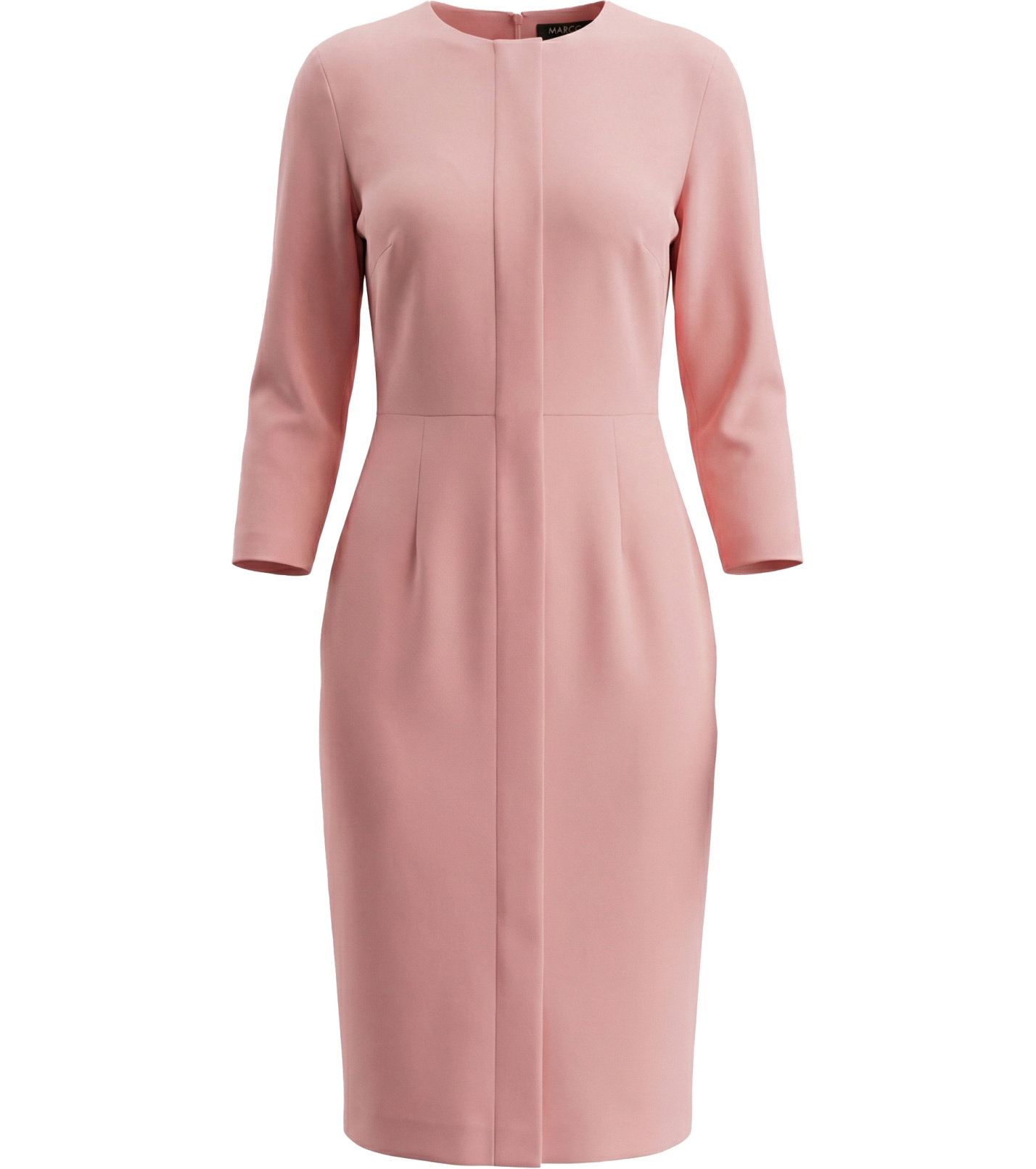 Dámske plášťové šaty s 3/4 rukávmi. Dĺžka šiat je mierne pod kolená. Prednú časť šiat zdobí pruh látky. V zadnej časti šiat je zips a rozparok. Vhodné na spoločenskú udalosť, ale aj do kancelárie.