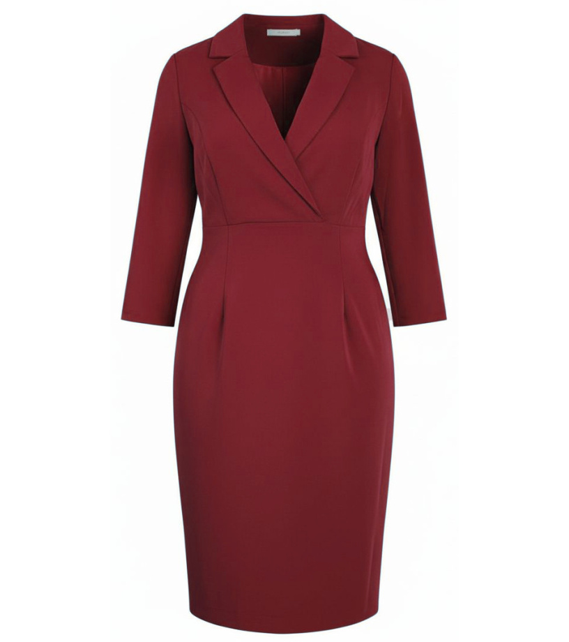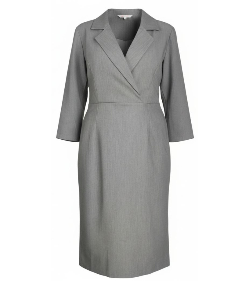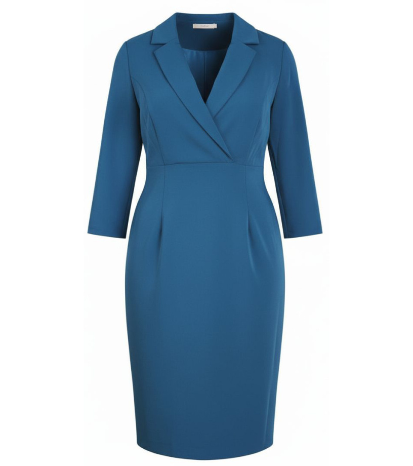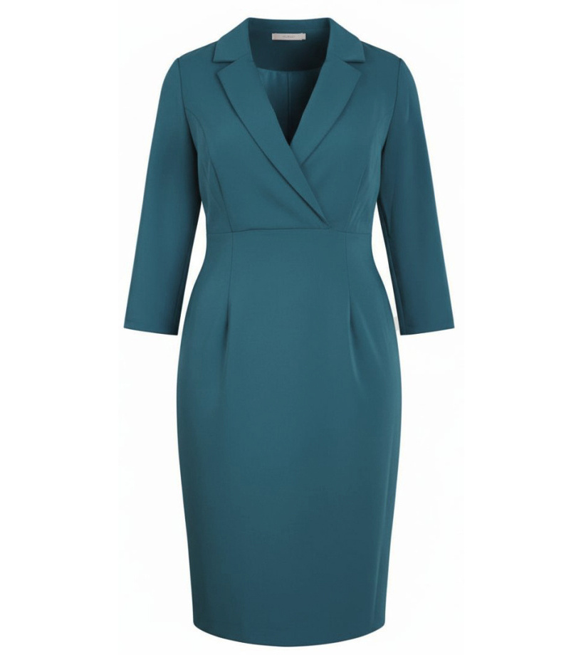 Dámske plášťové šaty s 3/4 rukávmi. Dĺžka po kolená. Šaty majú golier, výstrih do V.