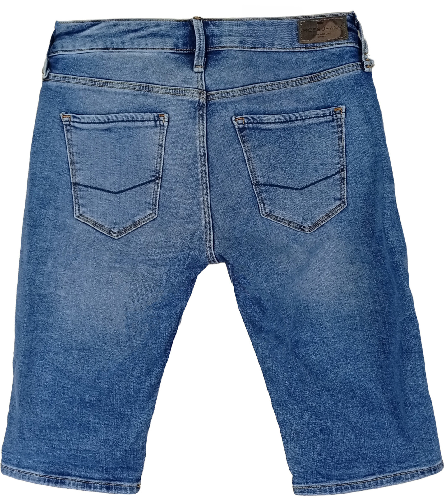 Dámske džínsové kraťasy značky Cross Jeans v klasickom modrom odtieni s ľahko opraným efektom. Pohodlný strih s dĺžkou nad kolená je ideálny na každodenné nosenie aj voľný čas. Vďaka zapínaniu na gombík a zips a tradičnému päťvreckovému štýlu pôsobia nadčasovo a ľahko sa kombinujú s tričkom, košeľou alebo letnou blúzkou. Jemne elastický denim sa postará o príjemné nosenie a dokonalé prispôsobenie postave. Tieto šortky sú skvelou voľbou pre ženy, ktoré hľadajú univerzálny kúsok do letného šatníka.