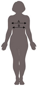 | B | Obvod pod prsiami | 68 - 72 | 73 - 77 | 78 - 82 | 83 - 87 | |