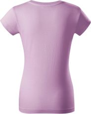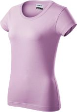 Dámske tričko mierne priliehavého strihu s bočnými švami a kratšími rukávmi z predsrážanej bavlny odolnej voči vyšším teplotám, ktoré možno prať pri 95 °C (biele) a 60 °C (farebné), vhodné na potlač a výšivku, má výstrih lemovaný rebrovaným úpletom 1:1 a ramenné švy spevnené páskou.